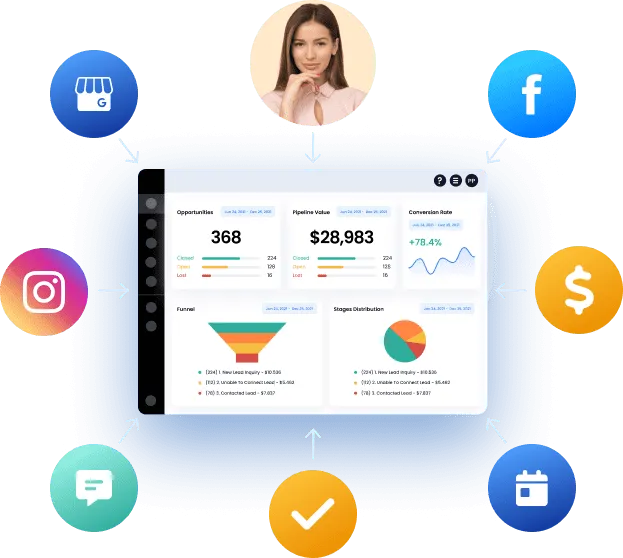 Integrates with Facebook, Instagram, Google My Business, SMS, Phone Calls, Email, & Webchat to make communicating with leads easy for you.